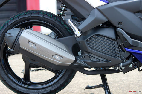 - Desain Sporty: Aerox 125 LC dirancang dengan DNA sporty yang terlihat dari desain lampu depan yang menyerupai air duct YZR-M1, hidden rear grab handle, racing seat, dan sport fender.